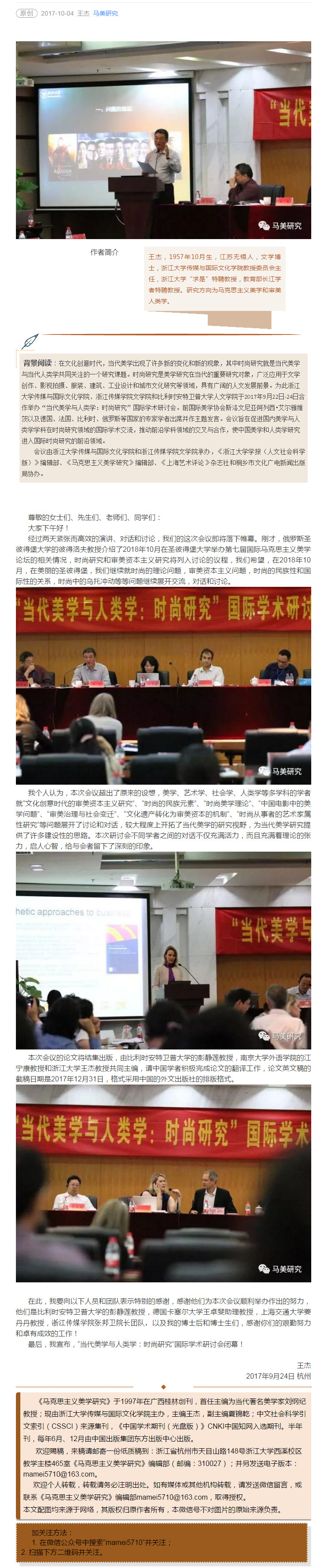 王杰教授在“当代美学与人类学:时尚研究”国际学术研讨会闭幕式上的致辞