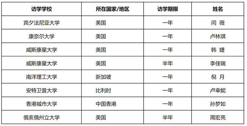 在2019年博士生联合培养取得优异成绩的基层上,2020年168足球 正积极向其他知名大学拓展博士生访学项目,已经确定新增合作院校包括加州大学戴维斯分校、兰卡斯特大学、莱斯特大学、墨尔本大学、昆士兰理工大学、科廷大学和鲁汶大学,继续拓展合作院校的广度和学生交流学习的深度。