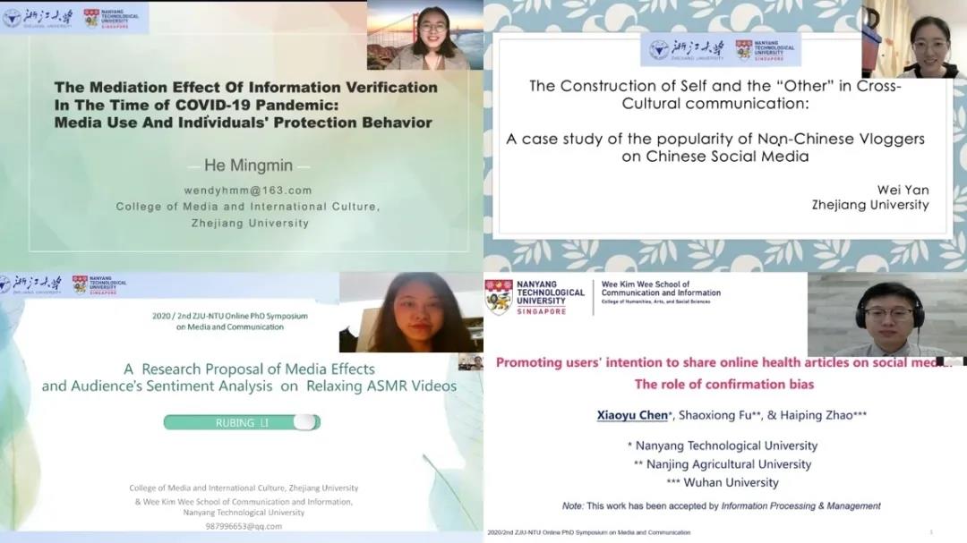 我很荣幸能够参与第二届浙江大学-新加坡南洋理工大学线上博士生双边研讨会,在为期两天的线上讲座和交流中,Professor Jung关于“学术之旅”的分享让人备受鼓舞,Professor Ling从宏阔的视野来看待新兴方法在传播学领域中的潜力与发展逻辑让人眼前一亮,Professor Lou和Professor Kim细致耐心的点评和建设性的修改意见更是让我获益颇丰。