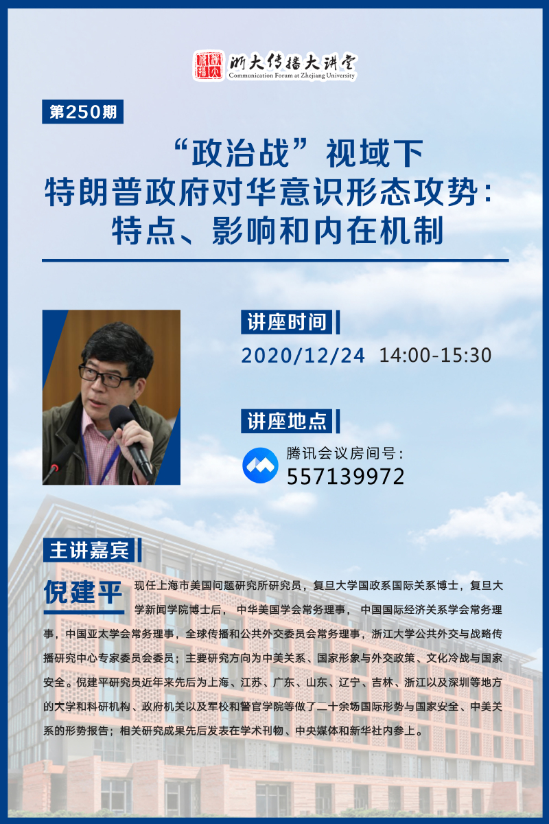 浙大传播大讲堂第250期:“政治战”视域下特朗普政府对话意识形态攻势:特点、影响和内在机制