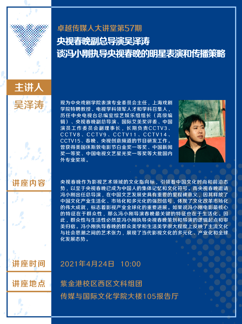 卓越传媒人大讲堂第57期:央视春晚副总导演吴泽涛谈冯小刚执导央视春晚的明星表演和传播策略
