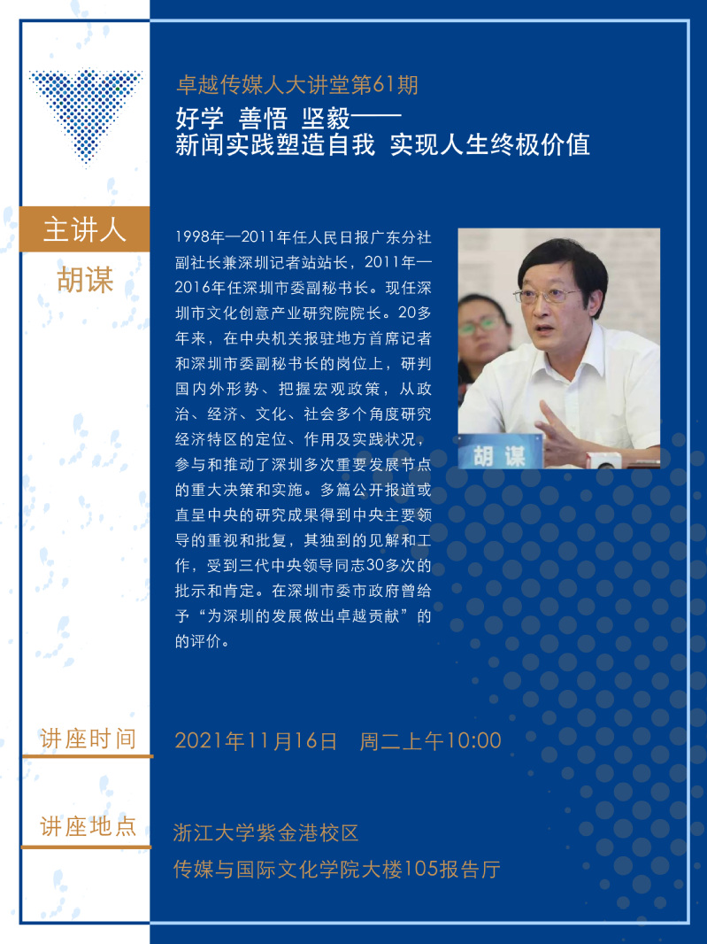 卓越传媒人大讲堂第61期:好学 善悟 坚毅——新闻实践塑造自我 实现人生终极价值