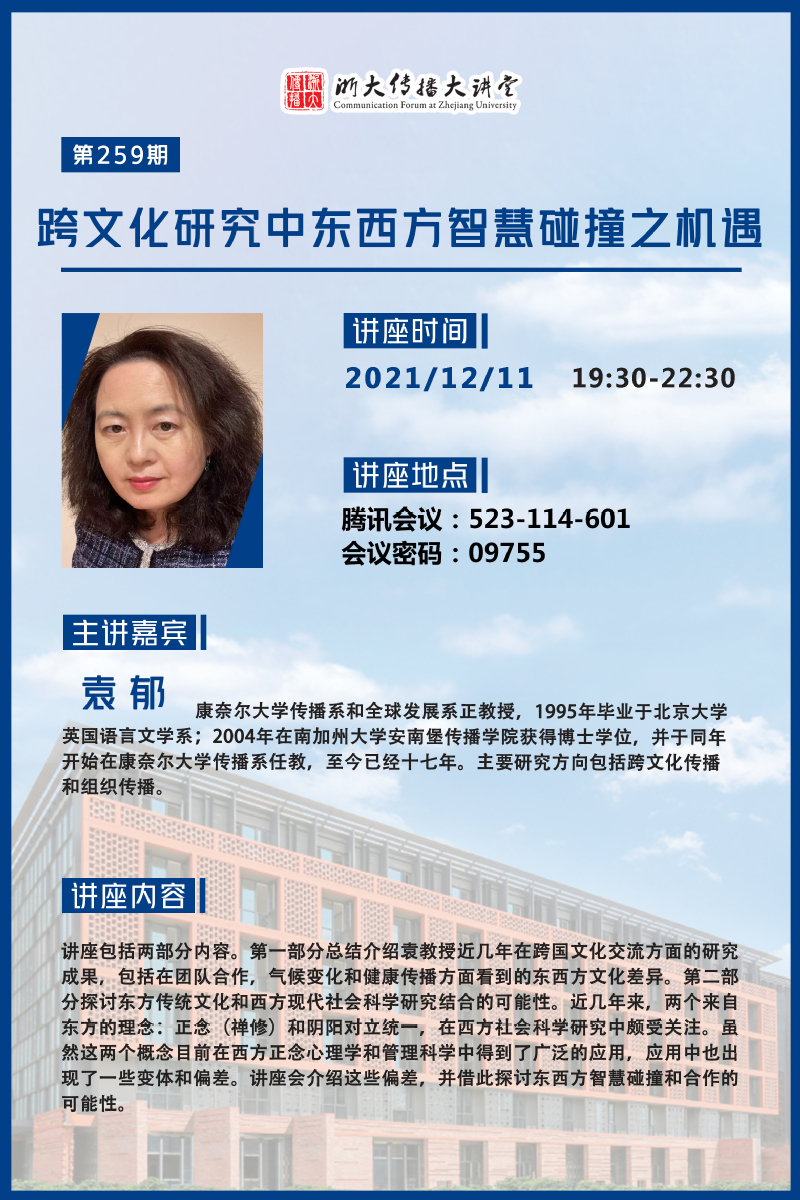 浙大传播大讲堂第259期:跨文化研究中东西方智慧碰撞之机遇