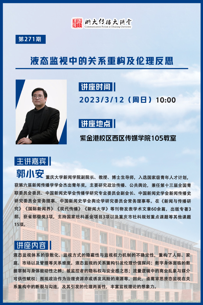 浙大传播大讲堂第271期:液态监视中的关系重构及伦理反思