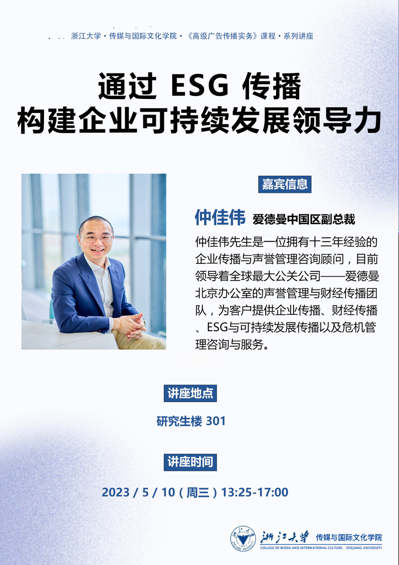 讲座预告 | 通过ESG传播构建企业可持续发展领导力