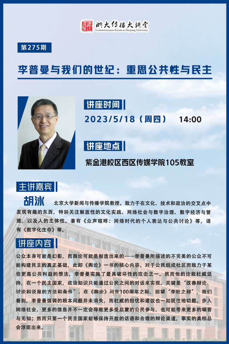 浙大传播大讲堂第275期:李普曼与我们的世纪:重思公共性与民主