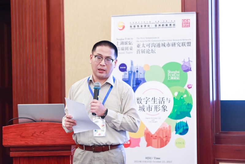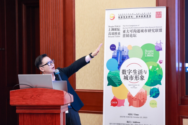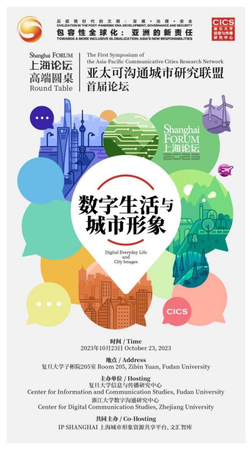 2023年10月23日,“上海论坛2023”高端圆桌暨亚太可沟通城市研究联盟首届论坛在复旦大学举行。本次论坛由复旦大学信息与传播研究中心、浙江大学数字沟通研究中心与IP SHANGHAI上海城市形象资源共享平台、文汇智库共同主办,旨在从新闻传播学视角回应习近平“人类命运共同体”理念,邀请亚太地区顶尖高校的城市传播领域著名专家,立足数字媒介技术建构亚太地区城市传播新型网络以及城市形象传播方式变革的新经验,聚焦“数字生活与城市形象”,探索数字时代城市形象塑造的新路径。复旦大学信息与传播研究中心主任孙玮教授、学术委员会副主席陆晔教授、副主任潘霁教授,浙江大学文科资深教授、数字沟通研究中心主任黄旦教授,上海交通大学媒体与传播168足球 副院长徐剑教授,澳大利亚国家荣誉院士、墨尔本大学文化与传播168足球 Scott McQuire教授,新加坡国立大学文化研究中心主任Audrey Yue教授,韩国延世大学城市社会空间信息研究中心主任Yong-Chan Kim教授等海内外学者出席了本次会议。