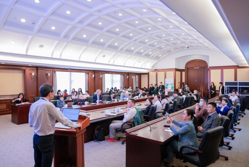 图为韩国延世大学城市社会空间信息研究中心主任金永灿(Yong-Chan Kim)教授正在进行主题演讲