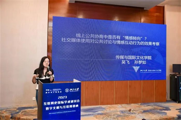 浙江大学助理研究员孙梦如作了题为“线上公共协调中是否有‘情感转向’?”的主题发言。她指出,通过引入对于情感因素的考察,增进了对于社交媒体使用、公共协商和线上公共讨论行为之间关系的理解,并且对于促进线上公共讨论或互动行为具有一定的实践启示。