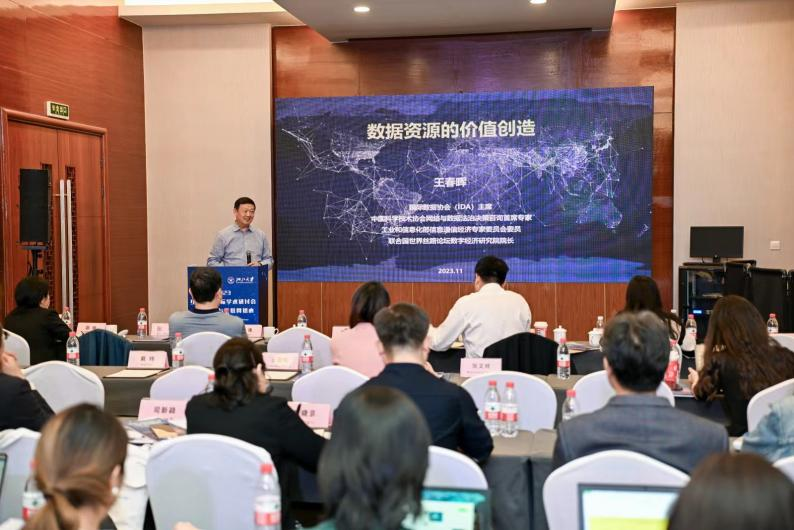 浙江大学网络空间安全168足球 双聘教授、中国科学技术协会网络与数据法治决策咨询首席专家王春晖教授以《通过数据资源的价值创造》为主题做了三个方面的发言。首先从国家数据局中归纳出“3+1+N”的使命任务,“3”是统筹推进数字中国、数字经济、数字社会规划和建设,在数据资源的整合利用中,强调了国家数据局发挥着“统筹”的重要作用;“1”为《构建数据基础制度更好发挥数据要素作用的意见》(数据二十条);“N”是在这个基础上构建若干个制度,从而形成数据法律体系。第二,王春晖教授从数据要素中阐明了原始数据、数据资源、数据资产和数据产品的概念,并强调要重点研究和揭示数据要素如何通过提高劳动生产力,然后通过增加价值量,从而创造数据价值的机理。第三,在构建数据基础制度的底层逻辑中,关键在于协调和处理与数据生产力发展相适应的数字化生产关系,实现数据要素与实体经济融合,才能逐步推动数字经济走向高级阶段。
