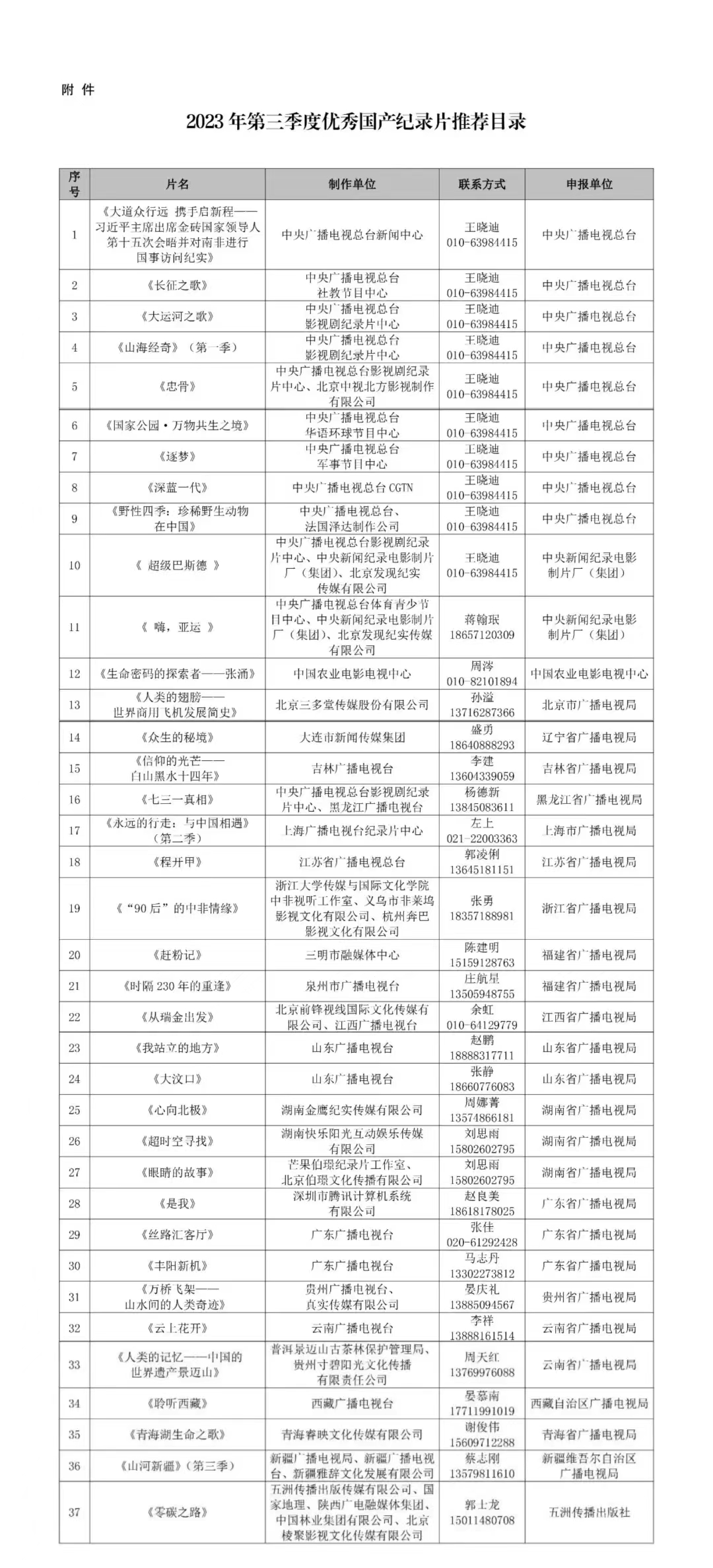 (国家广播电视总局公布的2023年第三季度优秀纪录片名单)