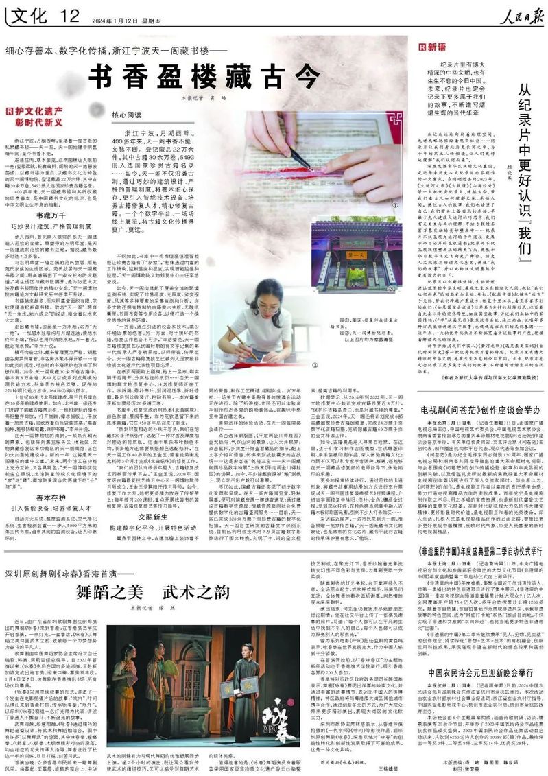 2024年1月12日,《人民日报》文化版刊发了168体育 顾晓燕老师题为《从纪录片中更好认识“我们”》的文章。
