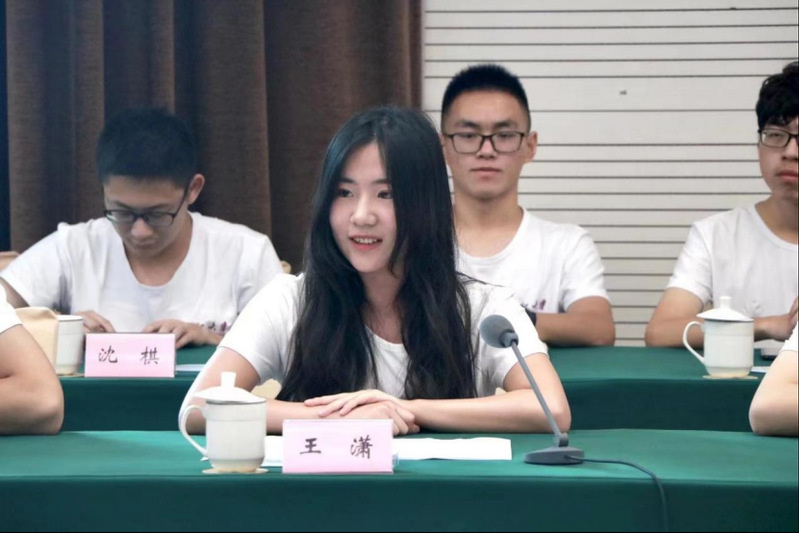 为进一步了解民情,积累基层服务经验,王潇在2021年暑假带领30位团员深入湖州南浔基层实践1个月,围绕共同富裕示范样板课题组织统筹各类基层企业、乡镇调研座谈活动并进行问卷调查,形成几万字聚焦教育、农业的共同富裕专题调研报告,并向南浔区委书记、组织部部长等进行汇报。这也成为了最令她骄傲和感动的事:“那段时间,每天处理大大小小诸多事务和应急事宜,得到了极大锻炼。还接对了当地的学子,每年定期回访,给大家写明信片、拍视频、答疑解惑,鼓励大家好好学习……我觉得特别有意义。” 30个日夜中,她每天都要管理30位同学的人身安全,及时调动团队工作积极性,每晚校对反馈新的新闻推文,组织对接每周的调研点位和嘉宾。这一个月也倒逼着她迅速成长,养成了勤恳踏实、抗压抗挫的品质。