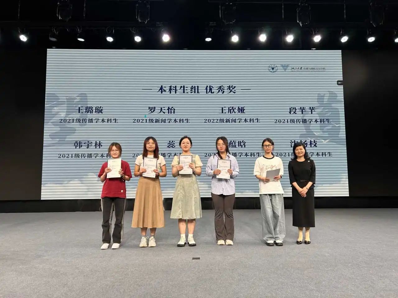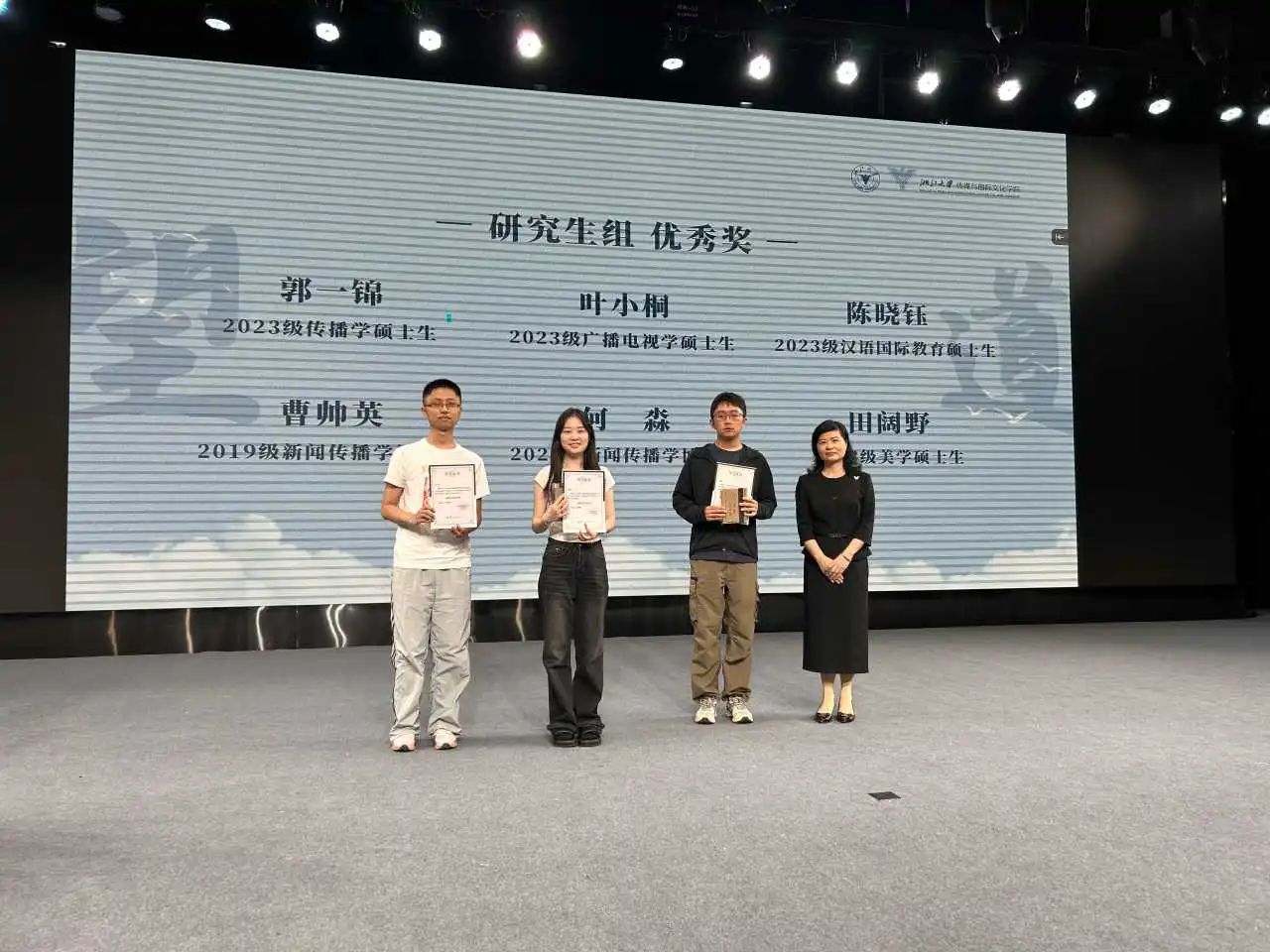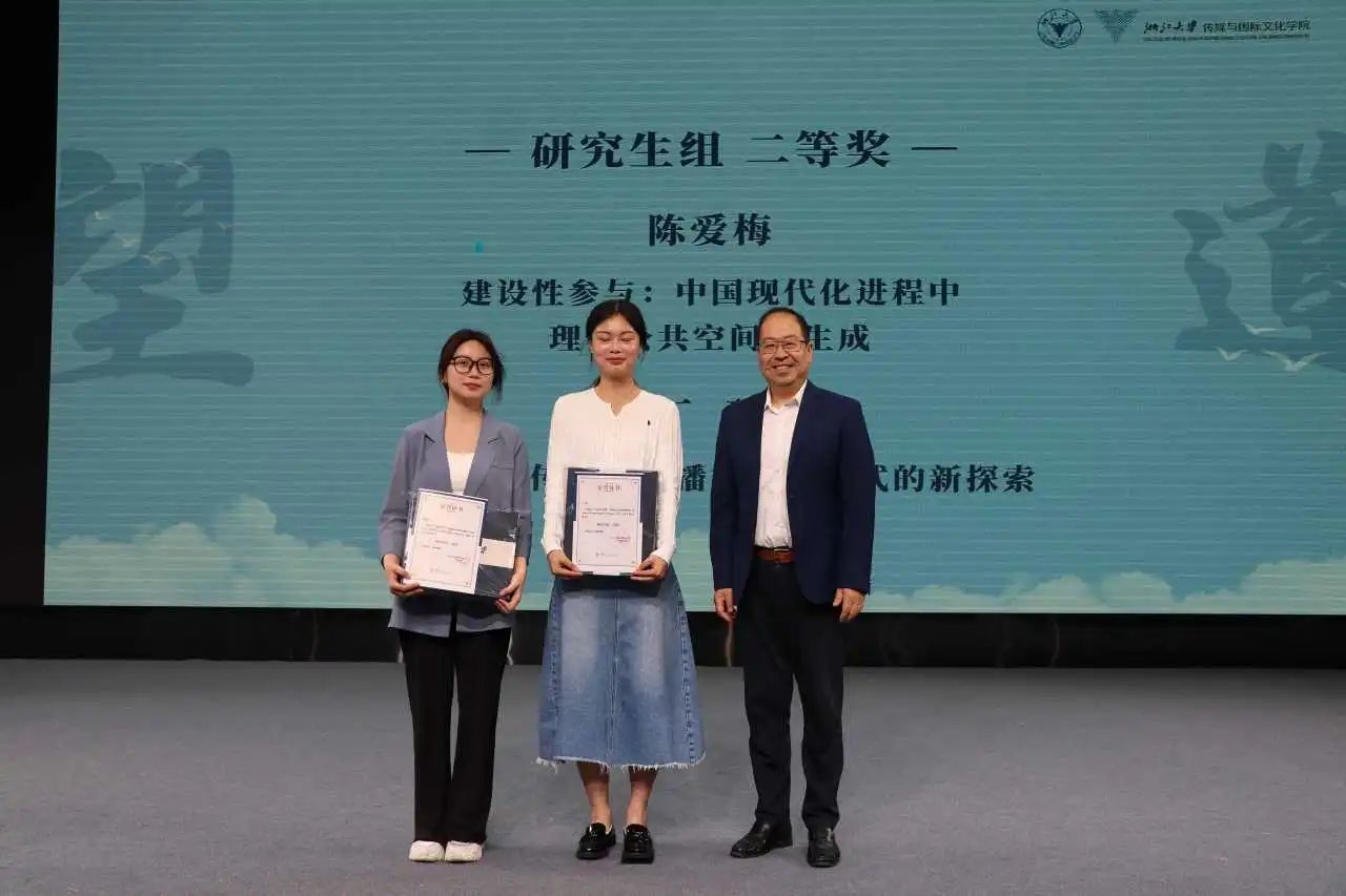 大会首先举行颁奖仪式。此次“望道”学生学术论文报告会通过学生自主投稿和评委评审,共评选出22篇获奖论文,其中一、二、三等奖共10篇,优秀奖12篇。获奖同学涵盖了本科、硕士、博士各个年级,获奖论文分别关注健康传播、国际传播、传播社会学、电影研究和美学研究等领域。
