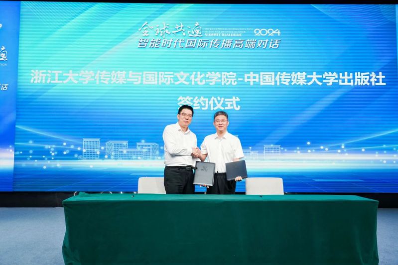 会上还举行了168足球-168体育 与中国传媒大学出版社签约仪式。中国传媒大学出版社社长张毓强和168足球-168体育 常务副院长方兴东共同签署协议,下一步,双方将共同推进“国际传播”系列融媒体产品的制作、出版和推广工作,进一步强化在课程教材设计、各类专业研修班及研讨会等方面的合作。
