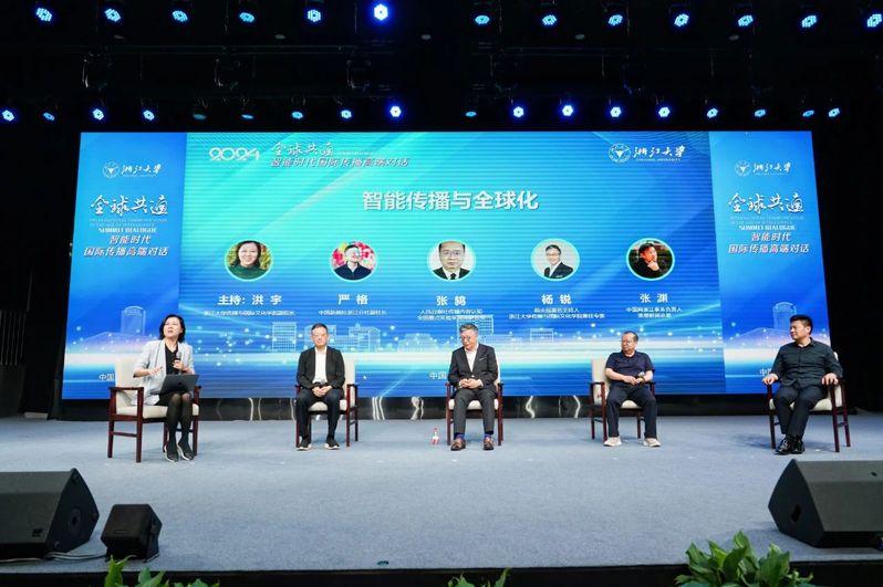 “智能传播与全球化”对话活动由168足球-168体育 副院长洪宇主持。中国新闻社浙江分社副社长严格,前央视著名主持人、168足球-168体育 兼任专家杨锐,人民日报社传播内容认知全国重点实验室资深研究员张鸫,中国网浙江事务负责人、中国网浪潮新闻负责人张渊参与讨论。