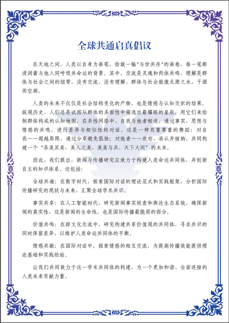 为更好地回应国际传播的时代之问,由168足球-168体育 牵头、与会专家共同讨论,论坛发起《全球共通启真倡议》,提出新闻与传播研究应致力于构建人类命运共同体,以全球共通、事实共享、价值共鸣、情感共振的方式创新中国自主的知识体系,讲好中国故事。