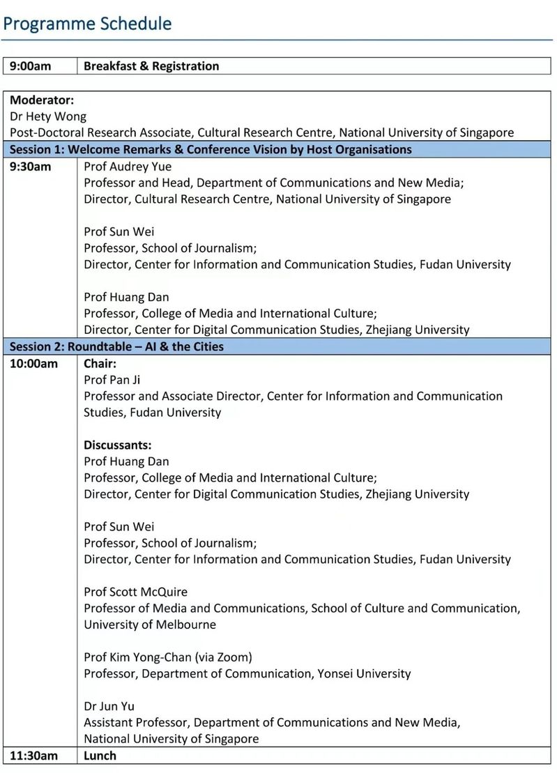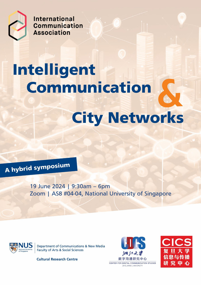 由复旦大学信息与传播研究中心、浙江大学数字沟通研究中心、新加坡国立大学文化研究中心联合主办的ICA(国际传播学会)会前会——“Intelligent Communication & City Networks(智能传播与城市网络)”将于2024年6月19日于新加坡国立大学举行。来自复旦大学、浙江大学、墨尔本大学、新加坡国立大学、伦敦政治经济168足球 等世界知名高校的研究者与青年学者,将围绕人工智能与城市、都市空间与数字媒介实践、数字叙事与城市文化、技术创新与都市生活等话题,展开讨论。