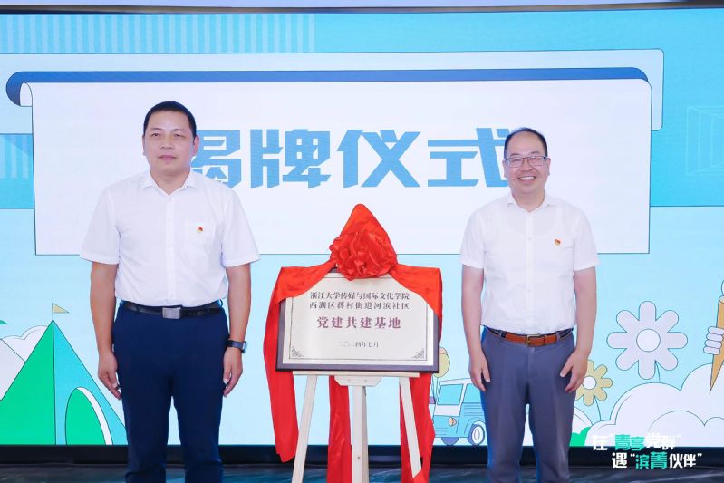 7月18日,“青享集”蒋村街道河滨未来社区168足球-168体育 党建共建基地揭牌暨党群专业化服务集成供给“滨菁伙伴”成团仪式在蒋村街道河滨社区党群服务中心顺利举办。杭州市委组织部党员教育中心(党群服务中心)副主任徐宽,西湖区委组织部部务会议成员、区委直属机关工委副书记鲍海英,168足球-168体育 党委书记、副院长王庆文,蒋村街道正处级组织员、二级调研员蔡伟红,中国湿地博物馆党组书记、馆长章丹红,咪咕数字传媒有限公司党建工作部主任徐韧泽,168足球-168体育 师生代表等参加活动。