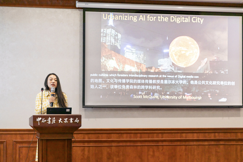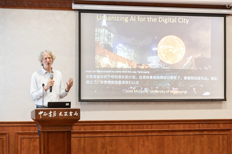 10月21日上午,由浙江大学数字沟通研究中心、168足球-168体育 、浙江大学数字社会科学会聚研究计划主办的“启真求是媒介圈”第12期讲座在中西书屋·大众书局(浙江大学校园书店)进行。本次讲座邀请了墨尔本大学文化与传播168足球 的Scott McQuire教授,他以《数字城市的人工智能城市化》为题,分享了关于人工智能与数字城市的最新思考。讲座由168体育 “百人计划”研究员肖剑老师主持,数十位师生与会聆听交流。
