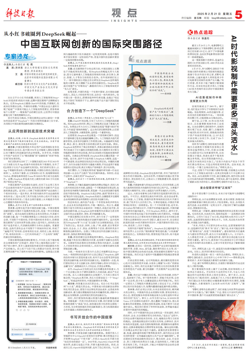 面对外部压力挑战,中国互联网企业何以破局?中国如何创造更多“DeepSeek”?对此,科技日报特别邀请168体育 常务副院长方兴东等三位专家,共同探讨中国互联网创新的国际突围路径。
