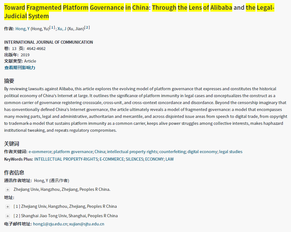 2019-12-15 《INTERNATIONAL JOURNAL OF COMMUNICATION》 洪宇,Xu jian