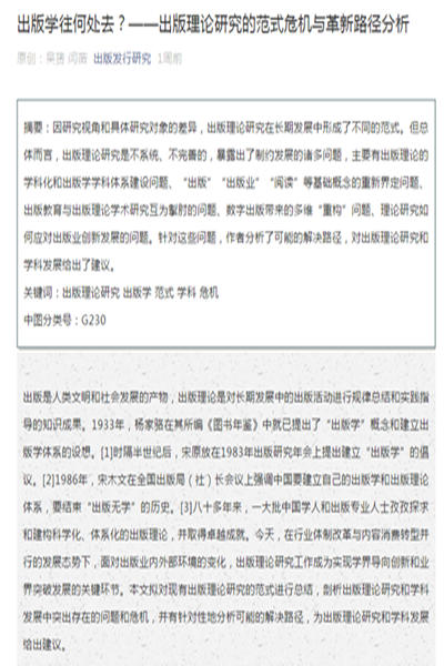 • 因研究视角和具体研究对象的差异,出版理论研究在长期发展中形成了不同的范式。但总体而言,出版理论研究是不系统、不完善的,暴露出了制约发展的诸多问题,主要有出版理论的学科化和出版学学科体系建设问题、“出版”“出版业”“阅读”等基础概念的重新界定问题、出版教育与出版理论学术研究互为掣肘的问题、数字出版带来的多维“重构”问题、理论研究如何应对出版业创新发展的问题。针对这些问题,作者分析了可能的解决路径,对出版理论研究和学科发展给出了建议。 更多