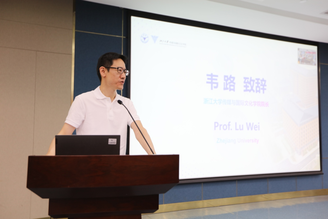 Following the opening ceremony, Professor Wu Fei from the School of Media and International Culture at Zhejiang University delivered a lecture titled Digital Commonality: Understanding the New Hypothesis of Social Interaction in the Digital Age, hosted by Dr. Huang Guangsheng, a researcher from Zhejiang University’s Hundred Talents Program. Professor Wu started from the background of digital existence, stating that digitalization, networking, and informatization have caused significant changes in the way humans exist, leading to a brand new form of existence. He reviewed the origins and development of public sphere theory and proposed the theoretical hypothesis of digital commonality to address the deficiencies of previous theories. Professor Wu emphasized that digital commonality stresses the commiseration born from a community of shared future for humanity, advocating for a “class” mindset and practice.