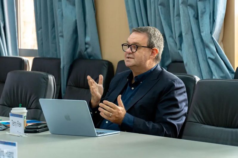 That morning, Professor Flew toured the colleges Experimental Teaching Center, a National Virtual Simulation First-Class Experimental Teaching Center for Journalism and Communication. The facility integrates cutting-edge intelligent media production technologies, and Flew examined its pedagogical applications in digital content creation and AI-driven communication tools, expressing strong appreciation for the colleges practice-oriented approach.
