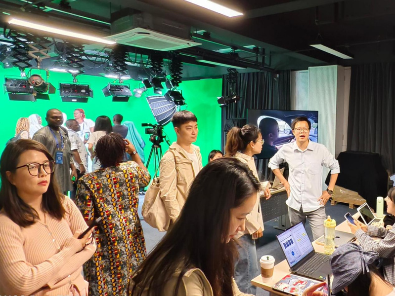 During the screening of faculty and student works, the international media professionals gathered in the converged media studio to watch highlights from productions such as Between Warp and Weft, The China-Africa Bond of the Post-90s Generation, I Went to Africa, and Water Reborn Me. When scenes of Africa's magnificent landscapes and Chinese and African builders working together appeared on screen, cheers and applause erupted in the room. Many media professionals raised their phones to capture familiar images of their homelands and enthusiastically discussed them with their peers.