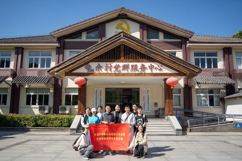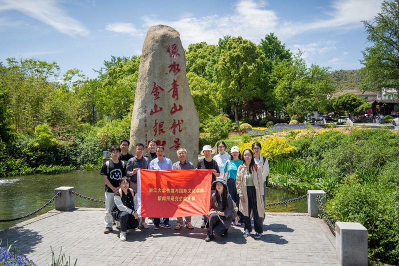 On April 26, faculty and student Party members from the Graduate Student Party Branch of the Journalism Institute, the Graduate Student Party Branch of the Social Thought Institute, and the Faculty Party Branch of the Journalism and Communication Department at Zhejiang University's College of Media and International Culture collectively traveled to Anji's Yucun Village for a Party Day event under the Leading the Way initiative. Zhang Mengxin, a mentor at the Wang Minghua Graduate Student Party Building Studio and a professor at the college, along with retired faculty member and professor Li Jie, participated in the study and research activities.
