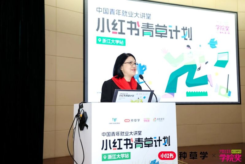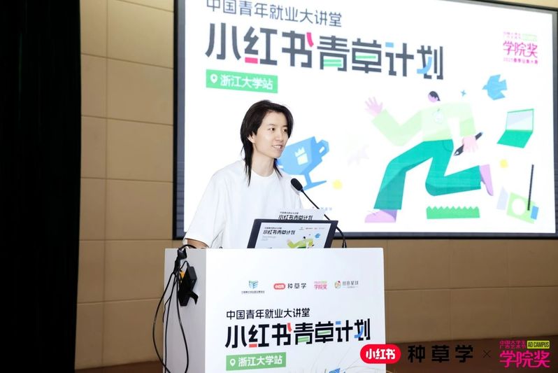 On the morning of May 11, as a key component of the New Media Marketing Talent Professional Skills Competition, the China Youth Employment Lecture Hall · rednote Grass Plan event was successfully held at the LinShui Auditorium on Zhejiang Universitys Zijingang Campus. The event was jointly initiated by the China Youth Entrepreneurship and Employment Foundation, rednotes Grass Planting Academy, the China College Students Advertising Art Festival Academy Awards, and Creative Planet Network, with co-organization by Zhejiang University's College of Media and International Culture and the Qizhen Interdisciplinary Innovation and Entrepreneurship Laboratory.