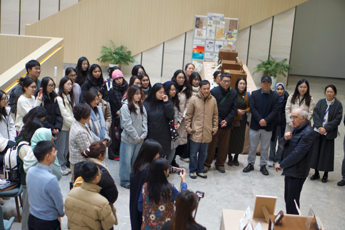 On 3 December, the opening ceremony for ‘Seeing Characters as Seeing the Person—Zhejiang University Student Chinese Character Creation Exhibition’ took place in the READ Space on the second floor of Zhejiang University Library. The exhibition was jointly initiated by the undergraduate course ‘Chinese Characters and Chinese Culture’ (lecturers: Zhang Liping and Gong Junji) and the postgraduate course "Research on Vocabulary Teaching and Acquisition in Chinese as a Second Language" (led by Gong Junji). Jointly organised by the School of Media and International Culture and the Zhejiang University Library, and co-hosted by the Department of International Cultural Studies, the Institute of Social Thought and International Culture, and the Institute of Aesthetics and Critical Theory, the exhibition showcases creative Chinese character works by 166 students from China and abroad. The opening ceremony was attended by Mr Bernard Le Sain, renowned French sinologist, former Chief Inspector of Chinese Language for the French Ministry of National Education, and Professor at the National Institute for Oriental Languages and Civilisations; Mr Wang Jue, Researcher at the University of Geneva; and Ms Wang Yuan, Secretary of the Party Committee of Zhejiang University Library.